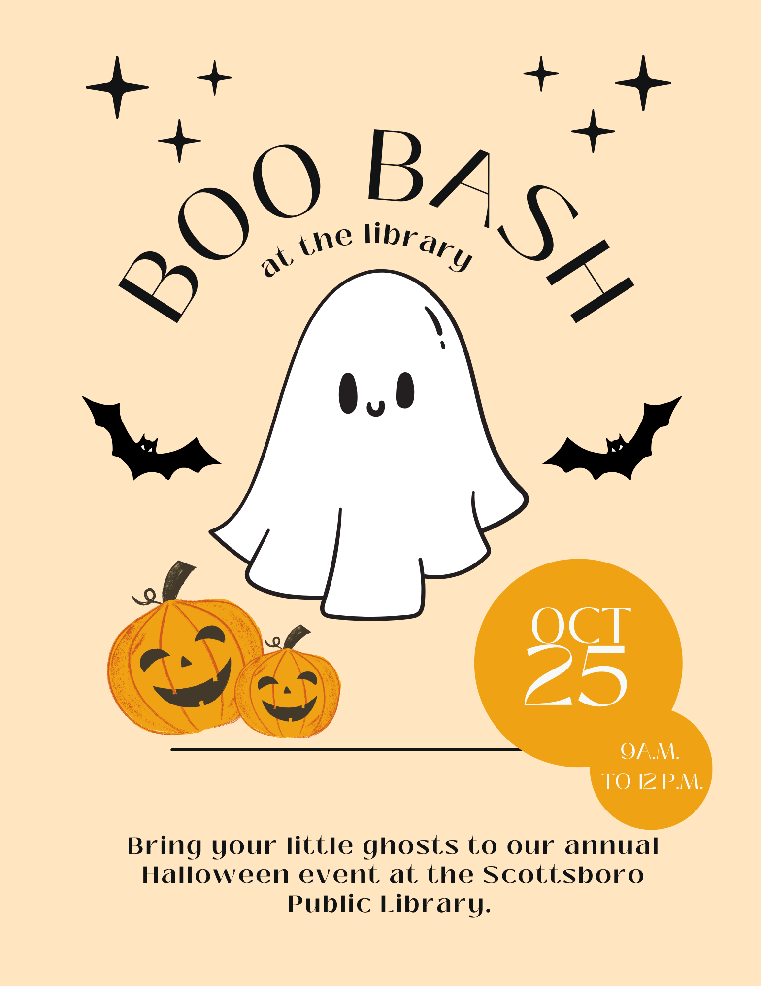 Join the Scottsboro Public Library staff for their annual Halloween event, Boo Bash at the Library. Bring your little ghosts to our trunk or treat inside the library. Can't wait to see all the costumes.