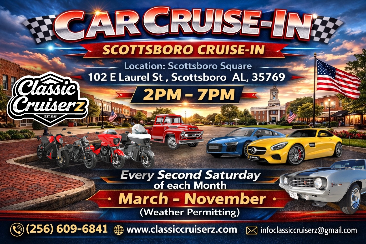 CLASSIC CRUISERZ | FIRST ANNUAL 2026 CRUISE-IN | SUPERHERO THEME 2PM-7PM This allows more time and the ability to include local vendors/businesses to participate in the Cruise Ins. Mini Peoples Choice Car Show remains at 4PM.