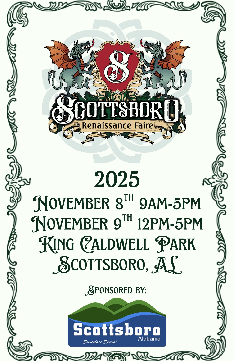 Scottsboro Renaissance Faire – November 8–9, 2025 Step back in time at the Scottsboro Renaissance Faire, a family-friendly festival in the heart of downtown Scottsboro, Alabama. On November 8–9, 2025, […]